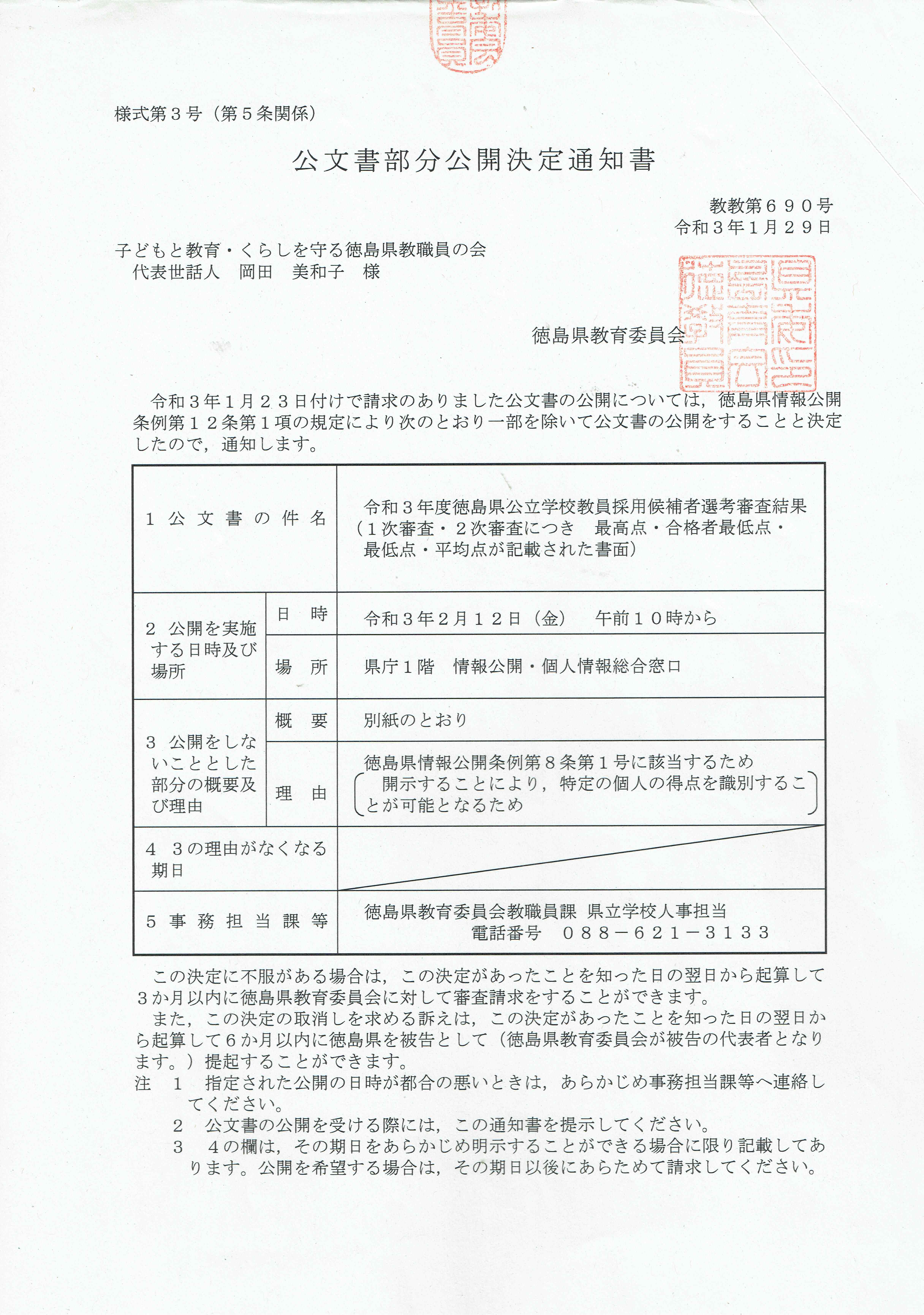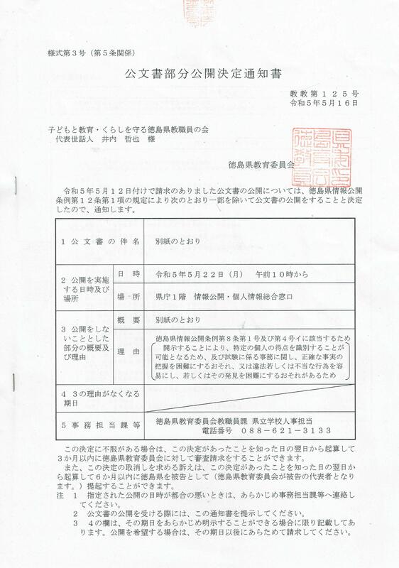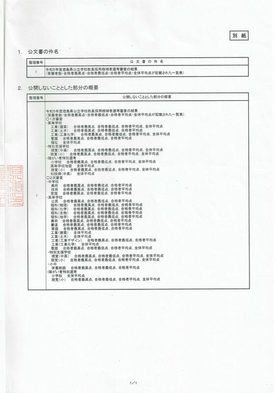 また、このページで公開している昨年度の審査結果(平均点など)について、情報源や入手方法について問い合わせがありました。県教委に情報公開請求して入手した文書をそのまま公開しているので、公開の決定通知を添付しておきました。
